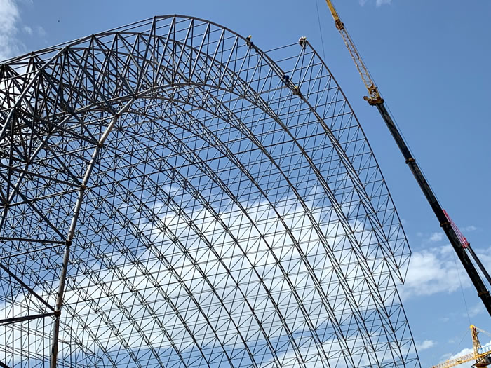 (2)网架加工前应对现场尺寸进行复测,确认无误后方可进行加工、安装;网架制作、运输、安装应遵守《空间网格结构技术规程》JGJ7-2010、《钢网架崇州螺栓球节点》JG/T 10-2009、《钢网架崇州螺栓球节点用高强度螺栓》 GB/T 16939-2016、《崇州钢结构崇州工程崇州施工规范》 GB50755-2012、《崇州钢结构崇州工程施工质量验收标准》 GB50205-2020。